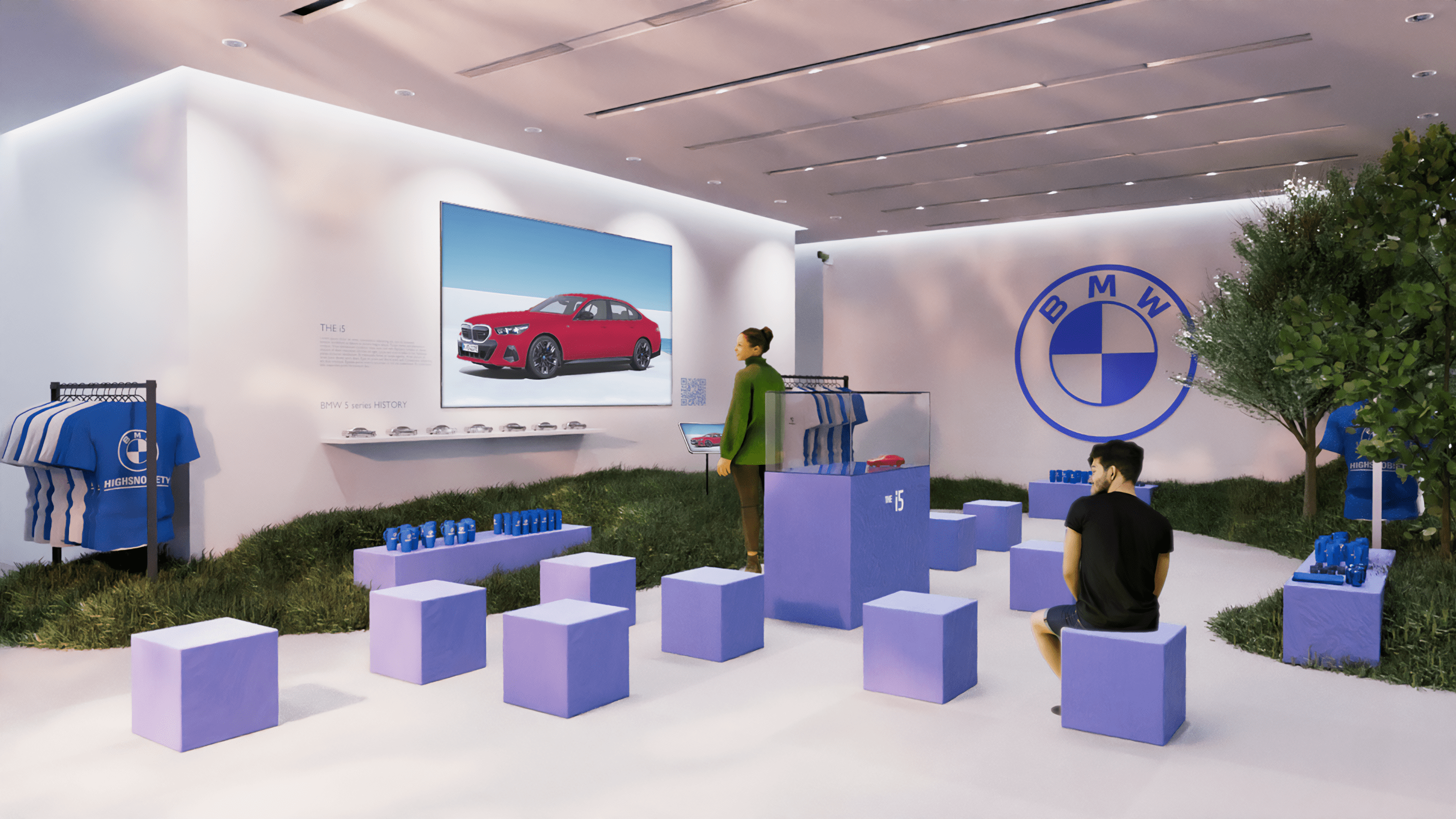ポップアップ・エキシビション内の展示空間は、表参道の都会の喧騒から離れて、訪れる方々を心地よいくつろぎへと誘う、日本とドイツ・バイエルン地方の融合を成したガーデンをテーマにデザインされている。併設するパビリオン内ではその時々の展示車両のテーマに合わせ、BMW i5やBMW i7が有する感性やクラフトマンシップを表現する特設デジタルコンテンツと共に展開。BMW i7展示時期には、先月開催された第76回カンヌ国際映画祭で発表したBMW Filmsのショート・フィルム「THE CALM」を毎日上映するミニシアターを楽しめる。会場内にはBMWの故郷であるドイツ・バイエルン地方の伝統的なカルチャーをフードとドリンクメニューに組み込んだ屋外カフェ&バーを展開する。屋外カフェ&バーでは、夏に合うようにドイツと日本の両方の要素を組み合わせて独自で開発した食事や飲み物を提供し、会場内のショップでは、車両テーマに絡めたHighsnobiety(ハイスノバイエティ)×BMWの限定コラボレーション・アイテムやポップアップ・エキシビションでのみ購入できるBMWライフスタイル・コレクションを販売する他、ブランド・パートナーとコラボレーションを行い、BMWが表現する多様な世界観をライフスタイルの観点から楽しめる空間となっている。