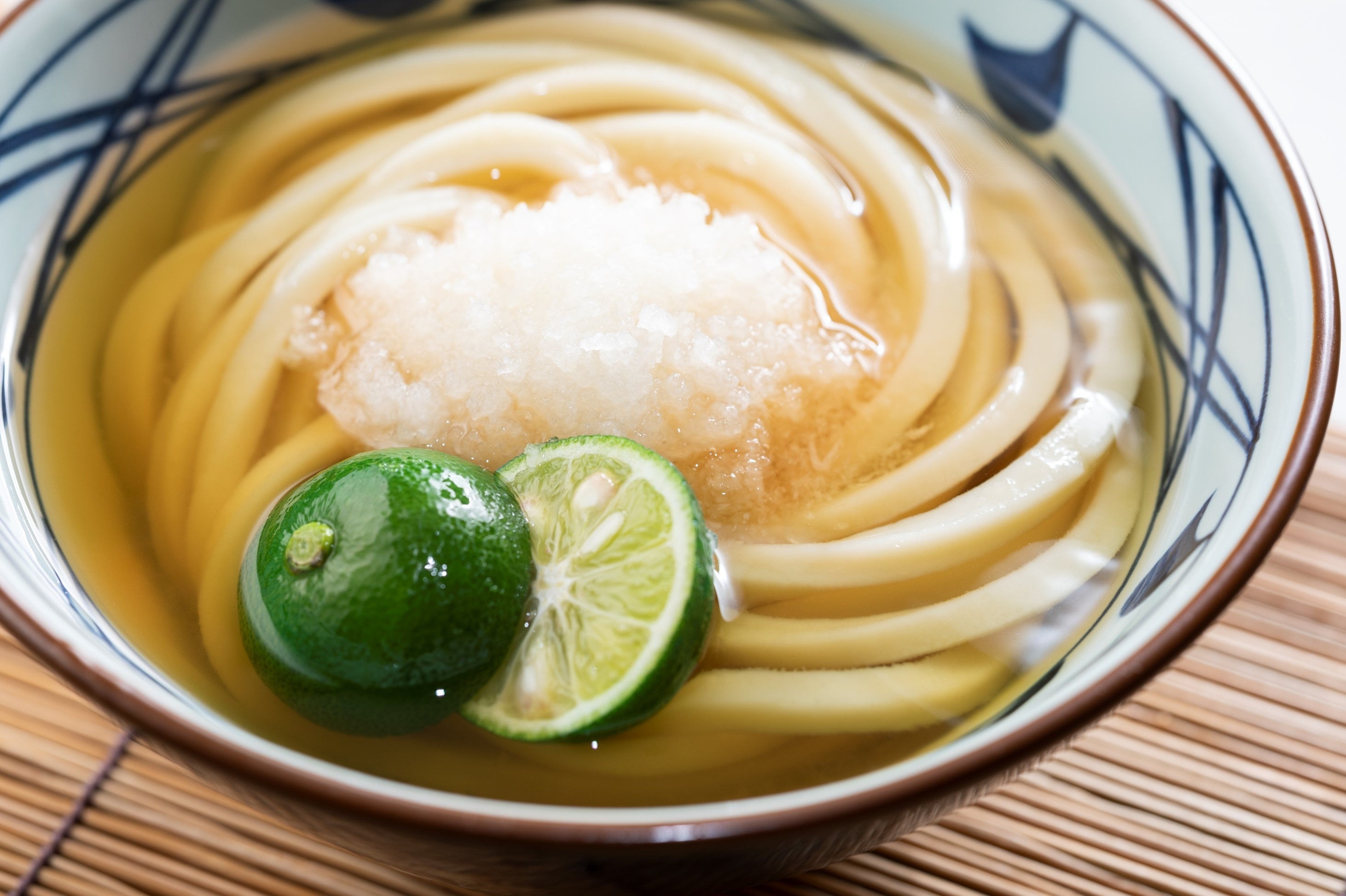 また、夏本番のこの季節に徳島県産すだちで清涼感満点の『すだちおろし冷かけうどん』など期間限定から定番までつるっとのどごしの良い冷たいうどんを幅広いラインアップでご用意しています。