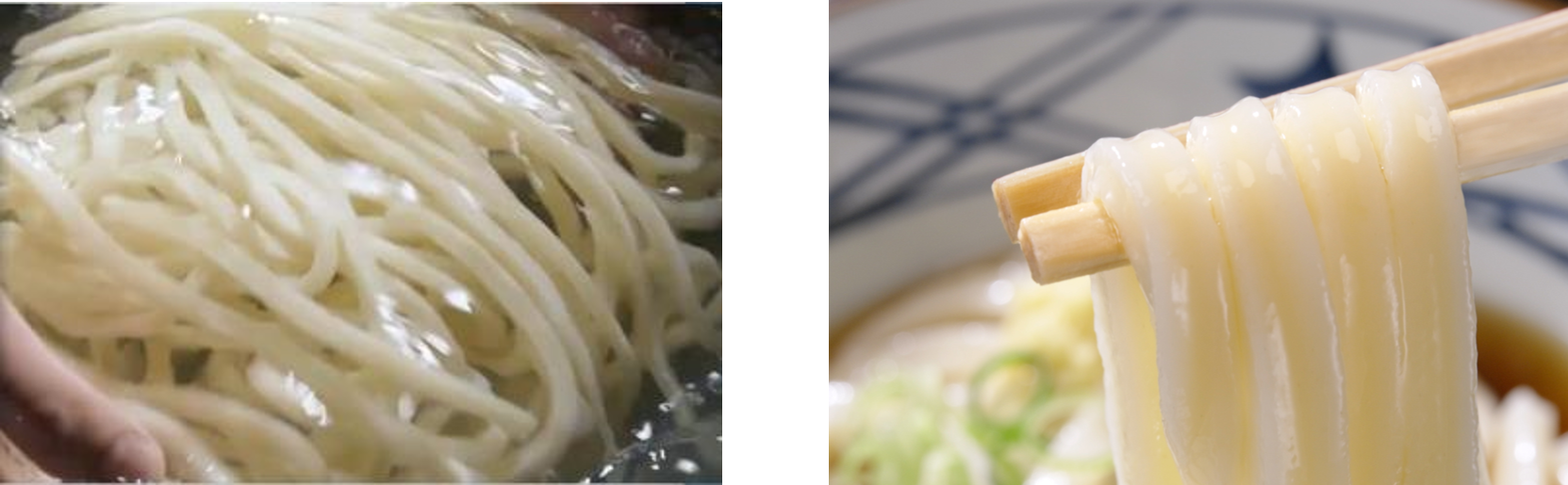 100%国産の小麦粉を毎日打ち、その場で麺を切って、茹でて、つくりたてをお客さまに提供しているからこそ、もちもちでおいしい独自の“丸亀食感”を守り続けることができているのです。