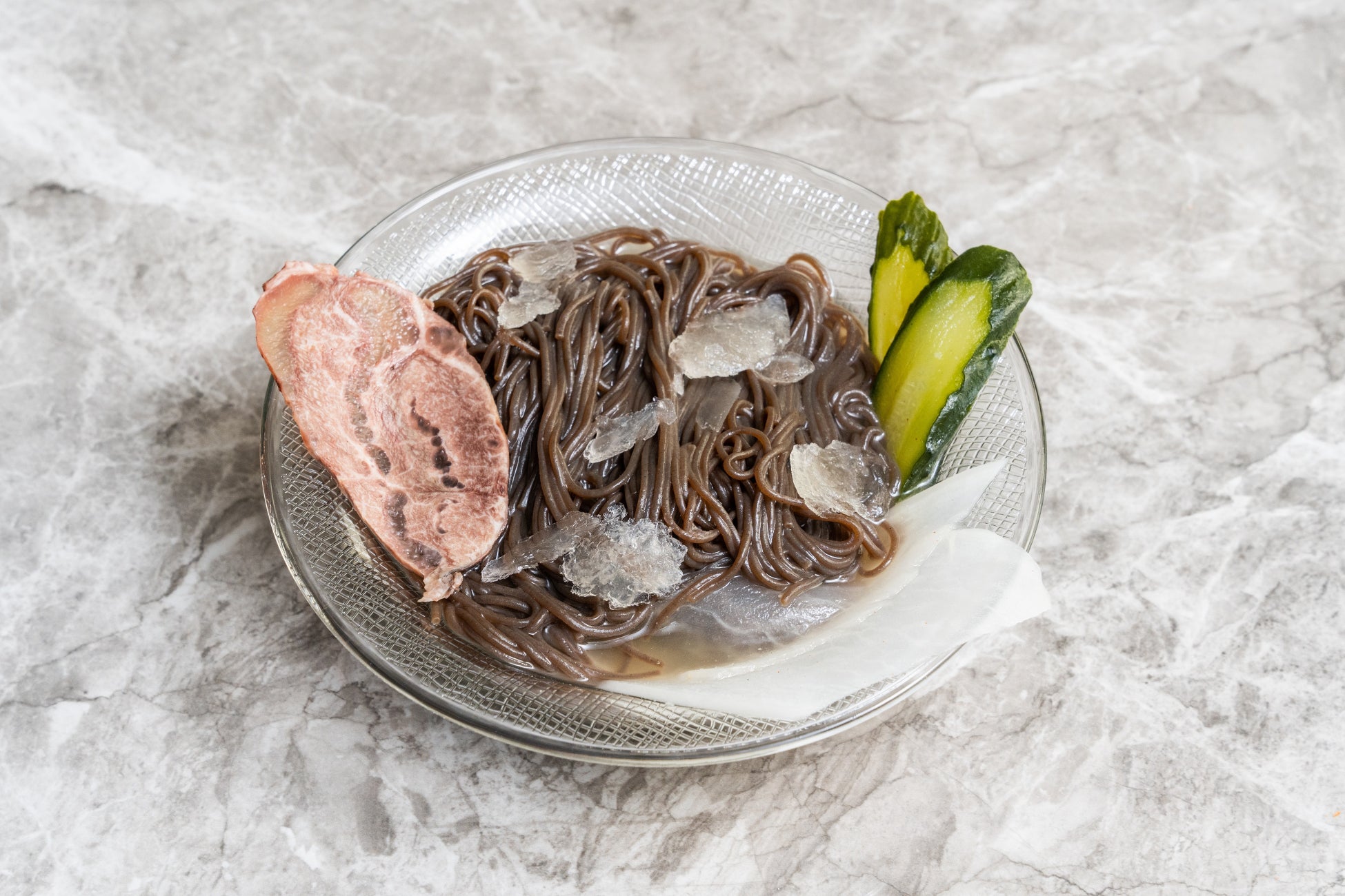 ハワイ通なら誰もが病みつきになるあの『ユッチャン冷麺』の名物をセレクト。こちらは、日本人のハワイファンが選ぶハワイグルメ、お土産などのランキング「111-HAWAII AWARD 2017」の韓国料理部門で第1位に選出された名品。秘伝のレシピでつくる黒い冷麺「葛冷麺」は細麺ながらも、もちっつるっとしたコシのある触感で、そば粉と葛粉を配合しているため暑い夏にもさらっと食べられます。冷感たっぷりのシャーベットスープや、特製旨辛タレを混ぜ合わせて味や食感の変化をお楽しみ頂けます。