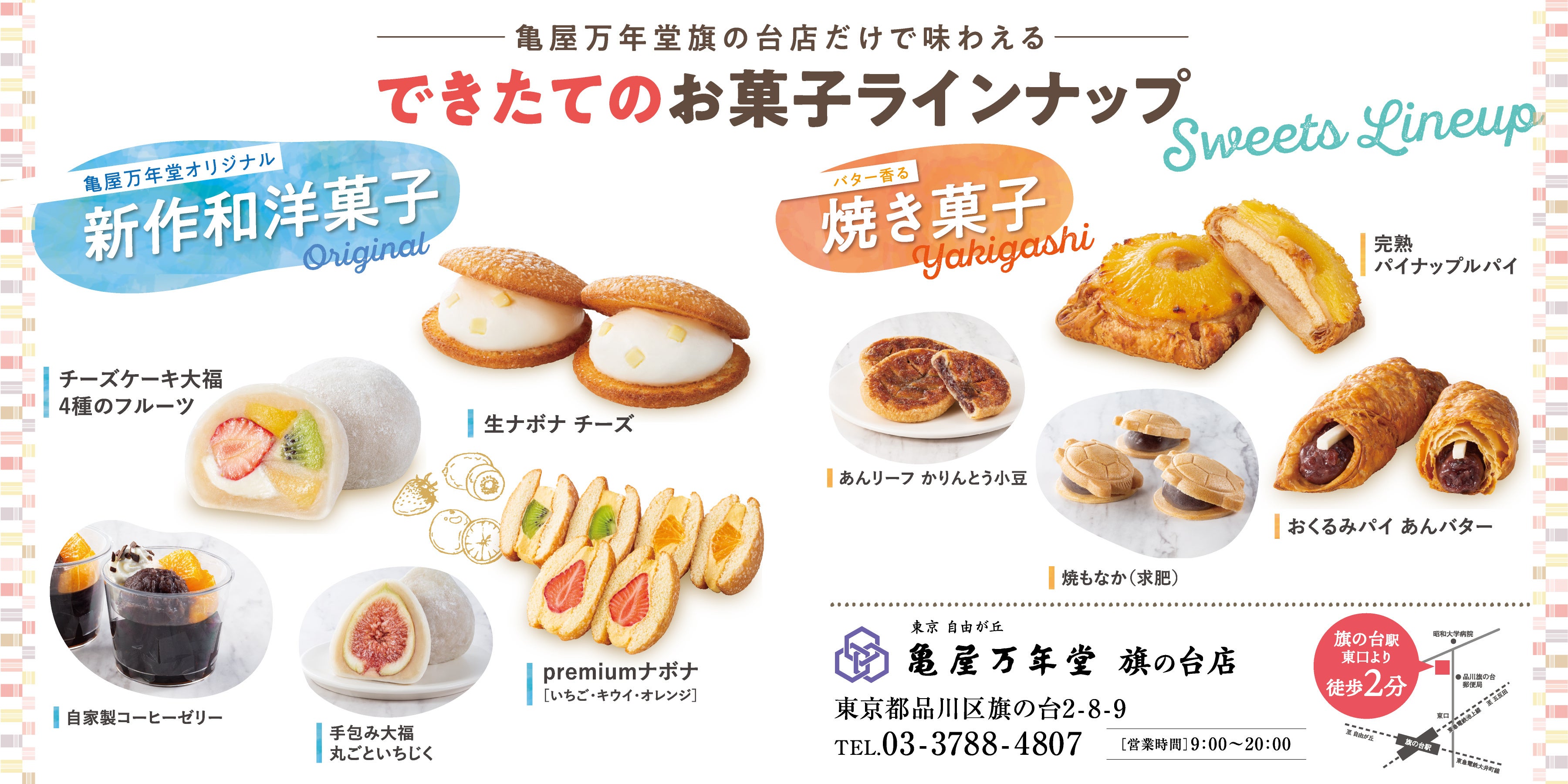 新作和洋菓子や焼き菓子など、旗の台店だけで味わえるできたてのお菓子ラインナップ!