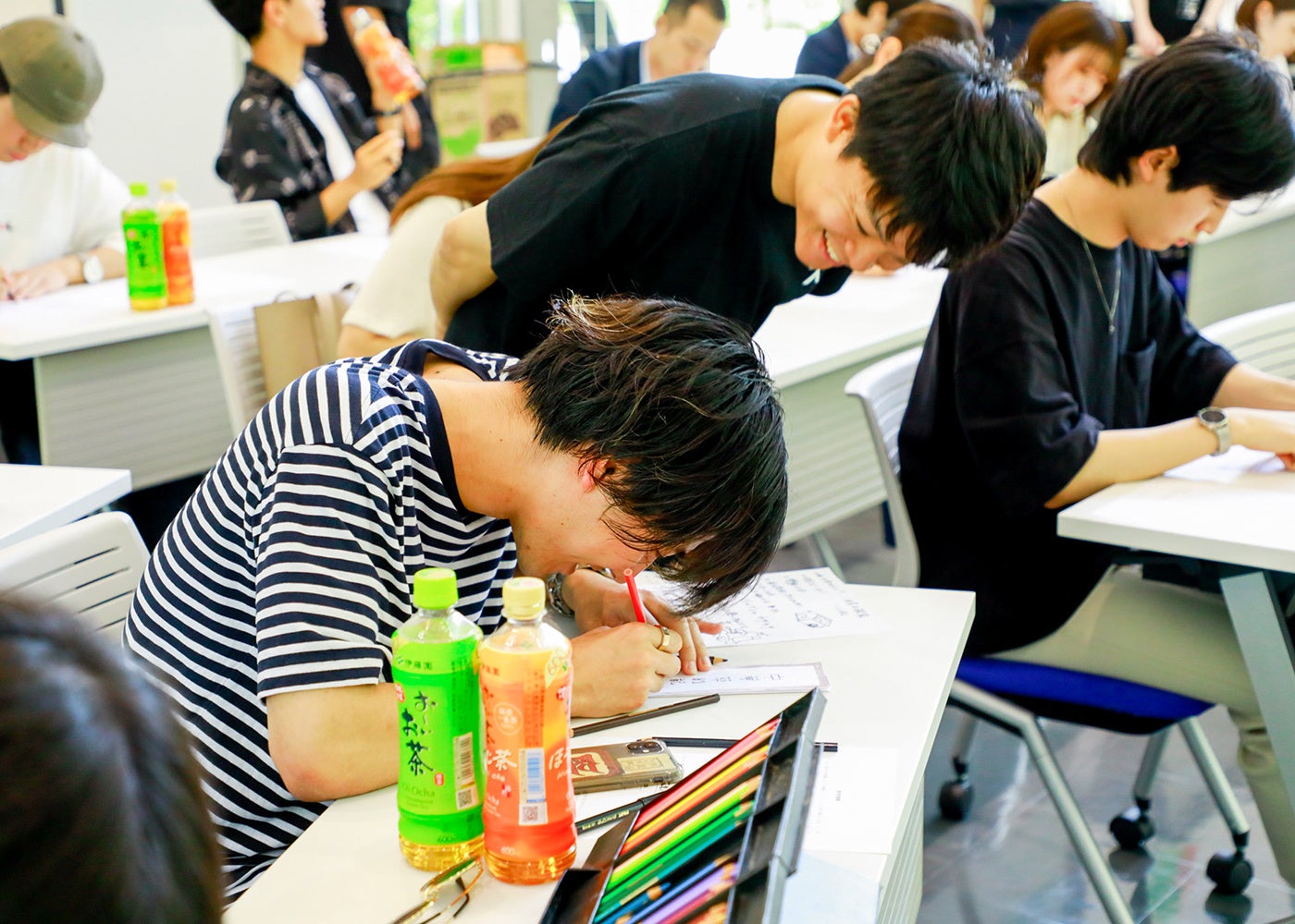 千葉大学の大学1年生~大学院2年生までの6学年、約25名の学生を対象に、感性教育プログラム「香りから物語を創る授業」を実施。ひとり1本ずつ伊藤園の「お~いお茶 緑茶」「お~いお茶 ほうじ茶」が配られ、実際に「香り」を感じ・味わいながら、「香り」から連想する感覚・景色・色・生き物など、様々な角度から言語化していき、言葉をもとに物語を創作。学生の皆さんから、想像力溢れるオリジナルの「香り」の物語がたくさん生まれました。