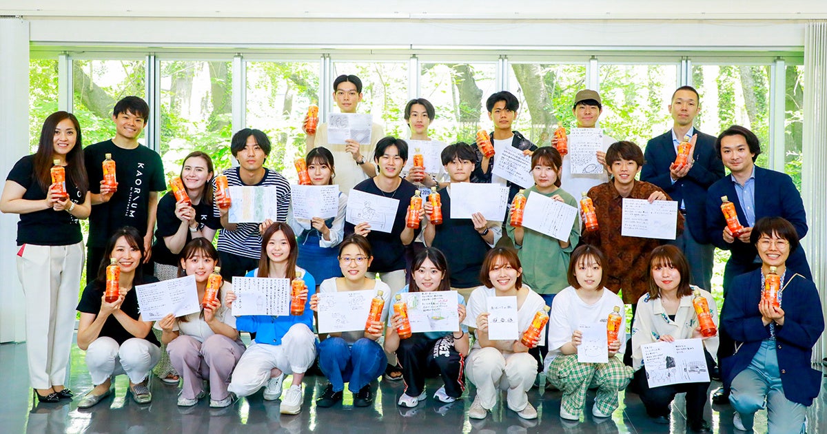 今回は、伊藤園の「お~いお茶 ほうじ茶」をテーマに、KAORIUMの感性教育プログラム「香りから物語を創る授業」を実施することで、従来は見えづらかった「ほうじ茶の香り」について、消費者(特に若い世代)に深く感じてもらい言語化することで、彼らの感じ方や願望などのインサイトを掘り下げ、商品開発やマーケティングのヒントを収集することを目的に、合同授業の実施となりました。