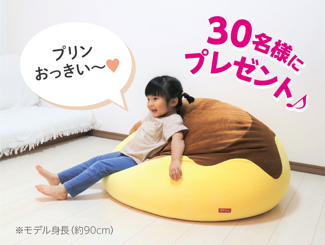 キャンペーンでは、神戸プリン発売30周年にちなみ、神戸プリン30個を円形に並べた大きさのクッションを、30名様にプレゼントいたします。触り心地はプリンみたいに、とろんとなめらか♪ぜひプリンに包み込まれる心地よさを体感してください。