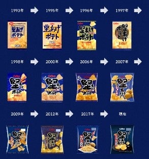 「堅あげポテト」は1993年11月に登場し、今年で発売30周年となるロングセラー商品です。大人向けのポテトチップスとして開発をスタートし、北海道のエリア限定で発売。少しずつ販売エリアを拡大し、2005年に全国展開をした商品です。開発の裏側には、設備改良やジャガイモの調達、商品名の検討など様々な試行錯誤がありました。2022年11月には、愛され続ける ブランドを目指し5年ぶりのリニューアルをいたしました。