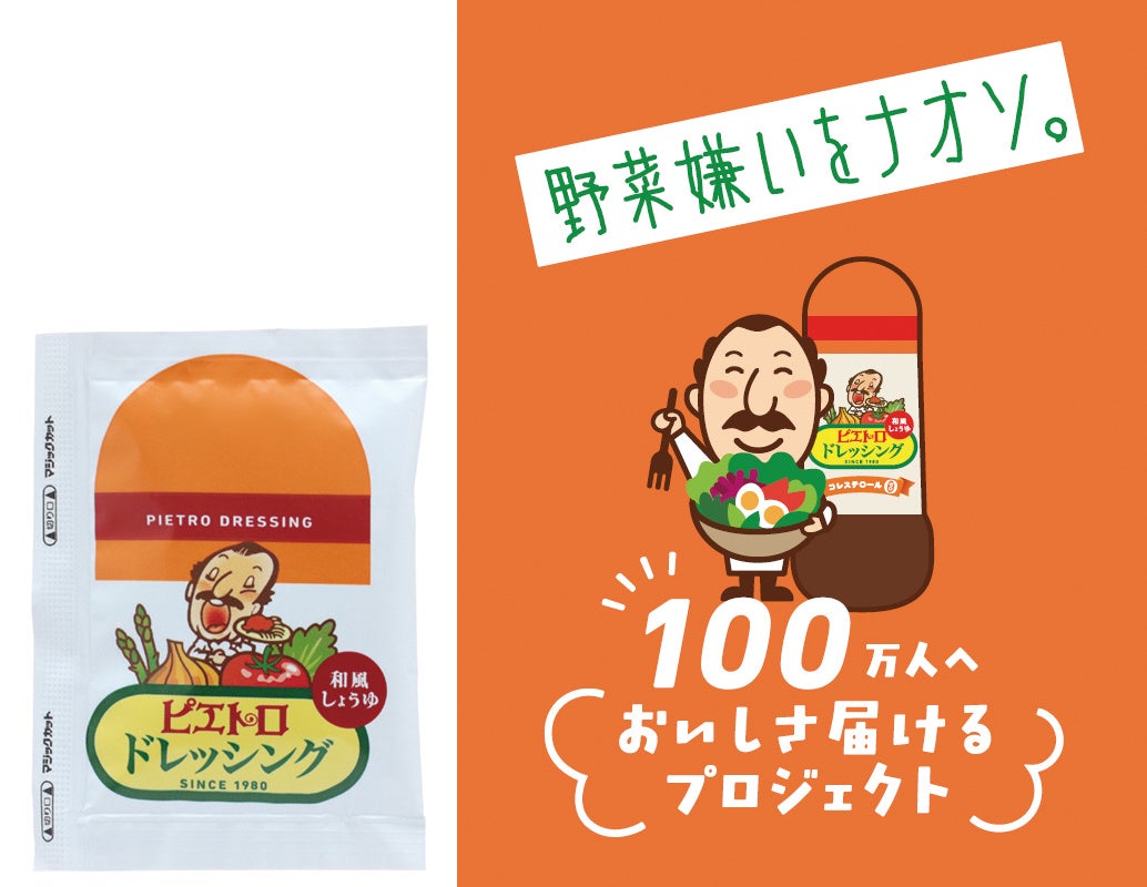 当社は今年6月より「野菜嫌いをナオソ。」をスローガンとし、日本全国のさまざまな場所やシーンで100万人にピエトロドレッシングのおいしさを体験していただく『100万人へおいしさ届けるプロジェクト』を始動いたしました。本プロジェクトの目的は、ピエトロドレッシングが野菜をおいしく食べるきっかけとなり、お子さまを中心とした野菜嫌いの方が野菜を好きになって、健康な毎日を過ごしていただけるようになること。