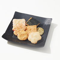 塩バター・海苔醤油・青のり・梅ざらめ・米粒焼き・カラーざらめ・えびせんの7種類の一口煎餅を一袋に詰めたバラエティ感ある一品。