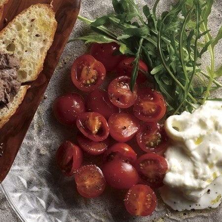 ミルキーで上質な味わいの生チーズを新鮮なトマトとルコラとともにどうぞ。