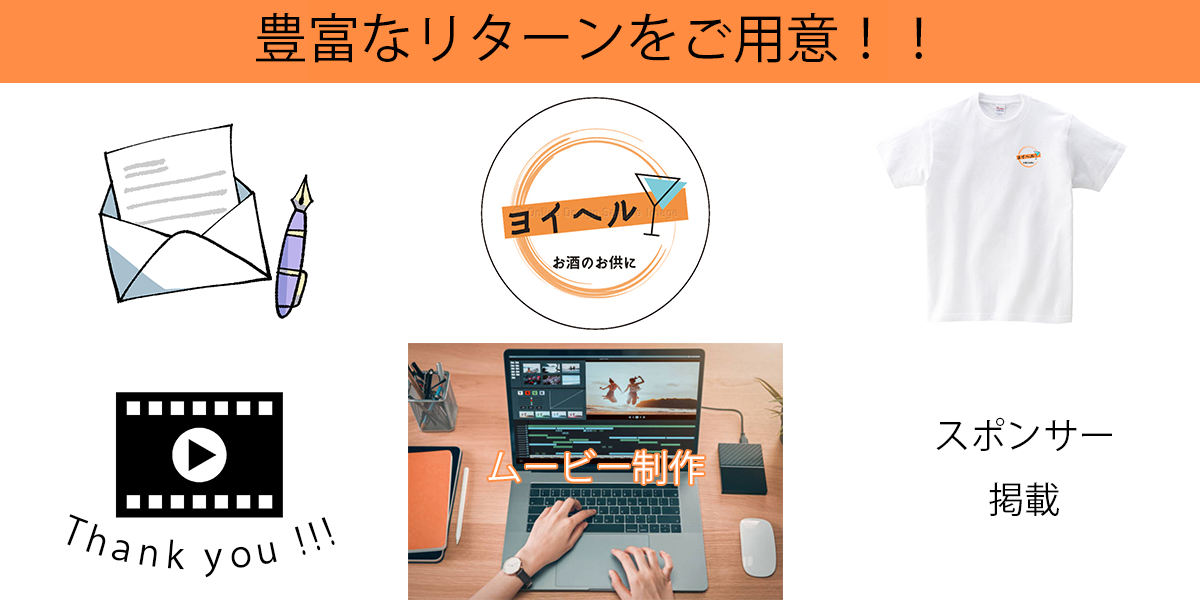 ご支援いただいた金額に応じて、以下のリターンを提供していただく予定です。