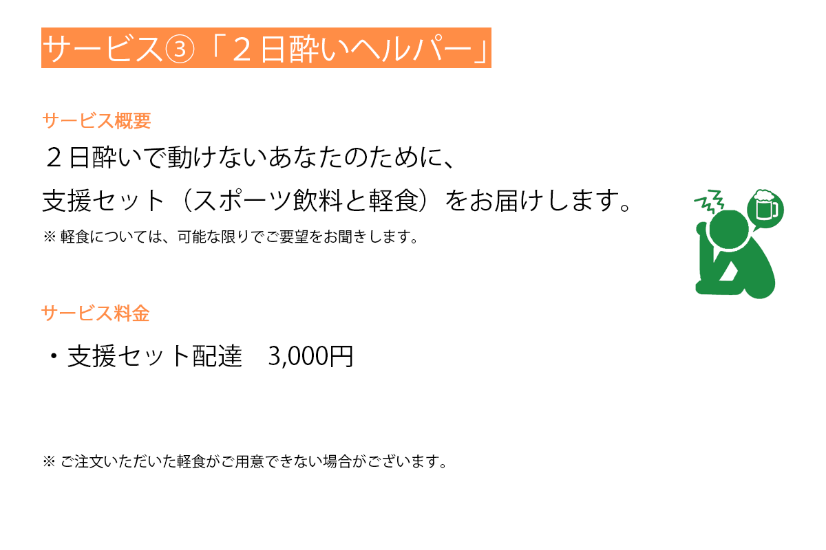 ③ 二日酔いだけど家に何もない… 動けないけどすぐに飲み物や軽食が欲しい…
