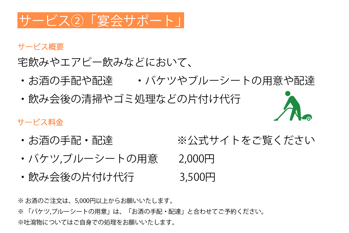 ② 宅飲み,エアビー飲みしたいけど、買い出しが面倒くさい、後片付けもしたくない…