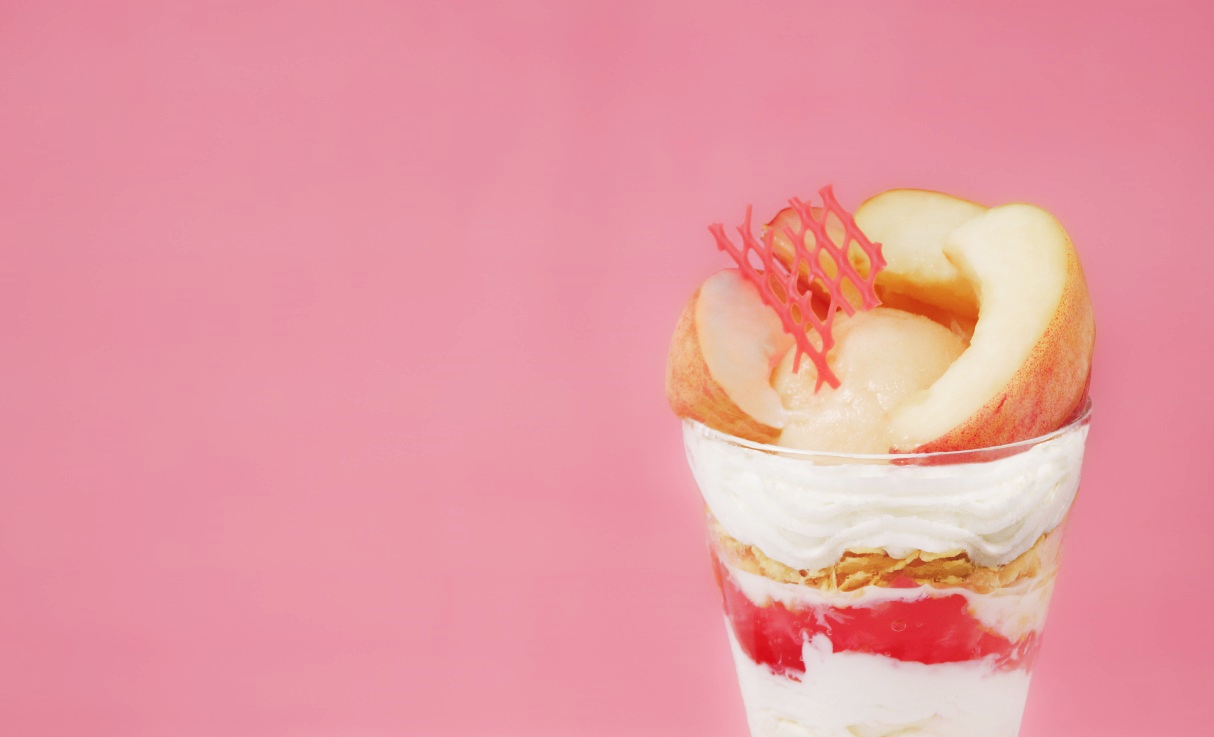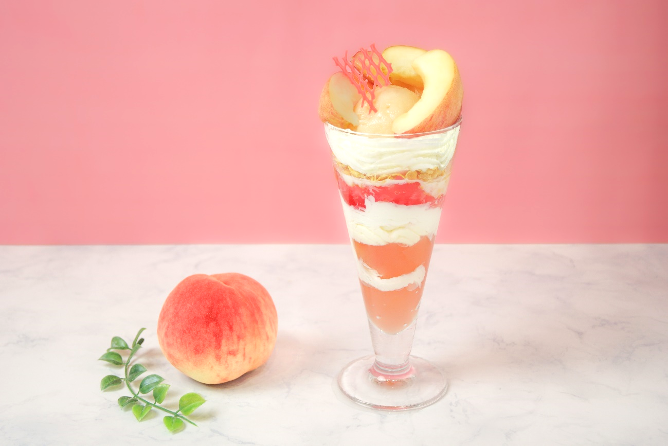 この度、お届けする最新作は、旬を迎える和歌山県産の桃をふんだんに使用した見た目もキュートなパフェ。