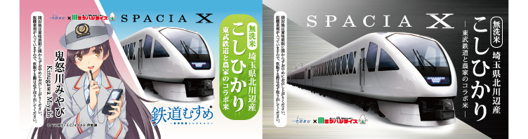 お米は東武鉄道と農家の方々が協力して育てた『埼玉県北川辺産コシヒカリ』を使用しており、東武鉄道スペーシアXと鉄道むすめのラベルで埼玉県産のお米をアピールしていきます。持ち運びに便利なボトル型でお土産やプレゼントに最適なサイズです。また普段使いとしてもご利用いただけます。