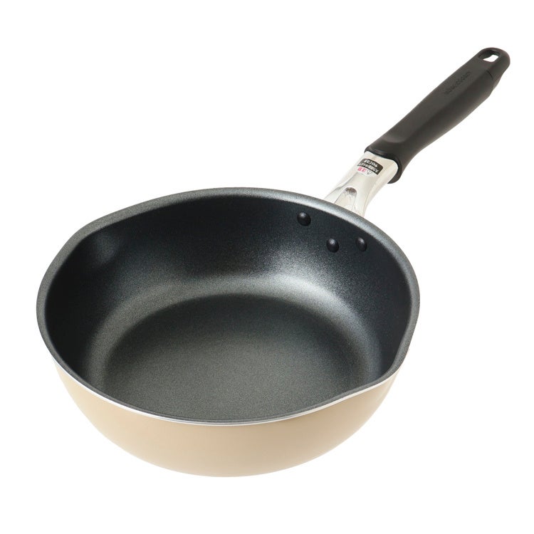 調理時の安全性に配慮した持ち手の位置が高いハンドルを採用しています。22cm深型と24cm深型は両口付で汁物を注ぎやすくしています。