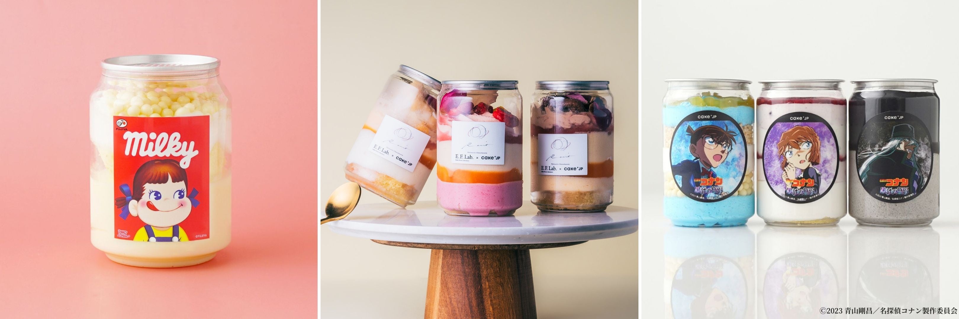 初登場のキーワード「ケーキ缶」。Cake.jpでは多くのアニメやアーティスト、人気パティシエとコラボレーションしたケーキ缶を発売しています。切り分け不要で手に持って食べやすく、色んな味を楽しめるケーキ缶は自分へのご褒美にはもちろん、ギフトにもおすすめの商品です。