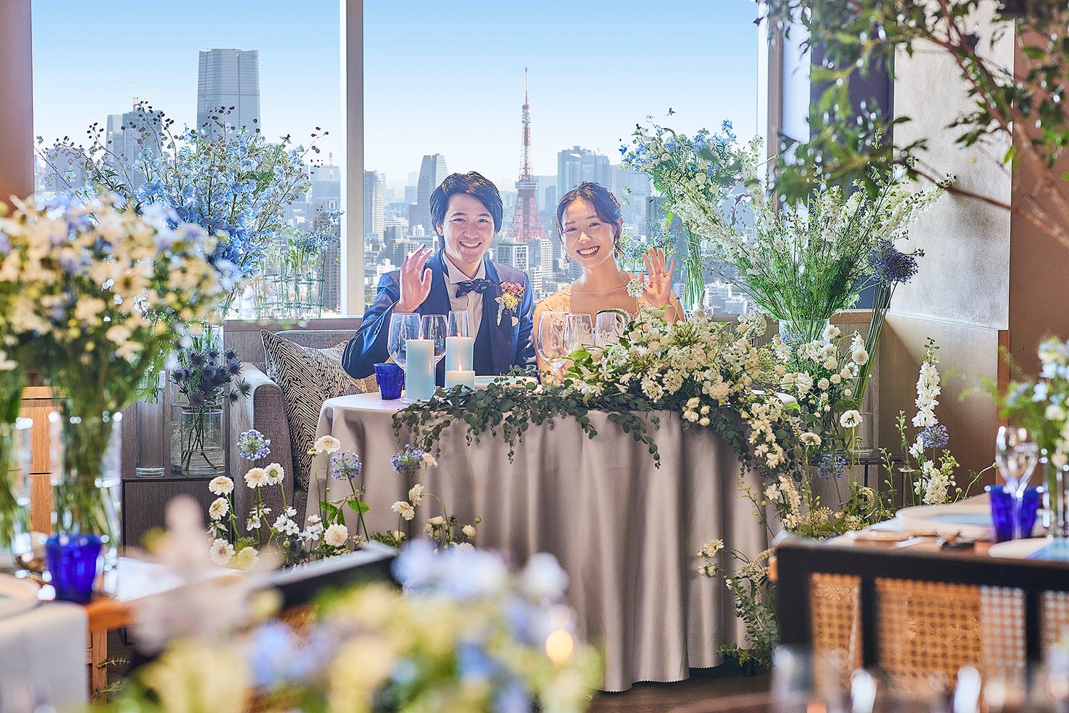 KINTANではこれまでにアットホームな雰囲気で1,5次会や2次会を開催するレストランウエディングを提供してまいりました。恵比寿ガーデンプレイス38階、地上160m、全長10mのパノラマビューから東京を一望できる絶景と、KINTANが自信を持って提供する贅沢な肉料理の数々を堪能できるフレンチ仕立てのフルコースに加え、専属のウエディングプロデューサーが打ち合わせから当日まで担当し、装花や装飾のデコレーション、空間や演出に合わせた音楽など、お二人のご希望に沿って、特別な1日をコーディネートいたします。