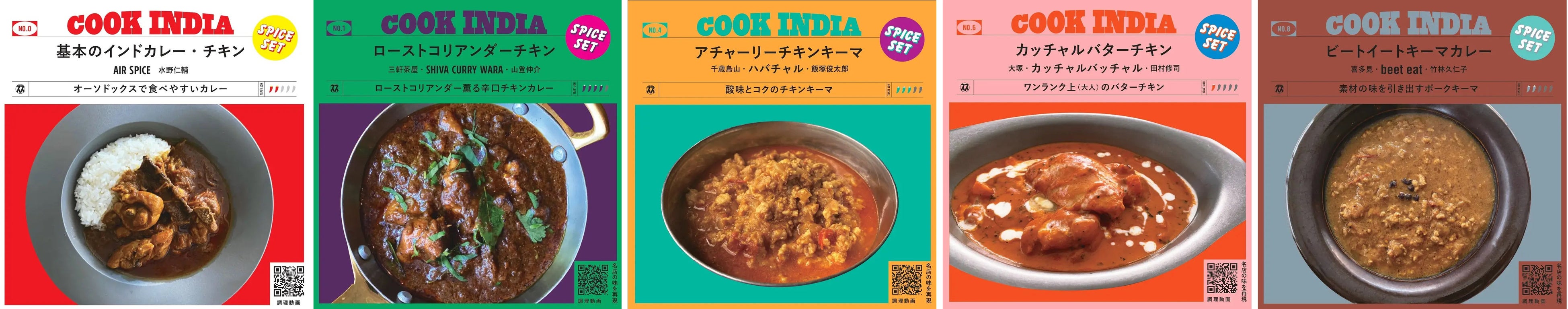 COOK INDIA(5種)、 UNKNOWN INDIA (4種) 、レトルトカレー(4種) 、 クラフトスパイス(7種)、