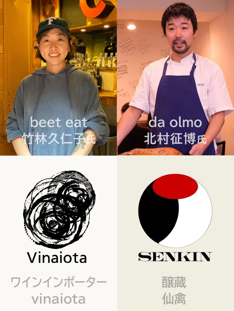 イタリアンレストランda olmo(神谷町)の北村征博氏、 beet eat(喜多見) の竹林久仁子氏による実演形式のオリジナルビュッフェを70名限定で提供。お酒はイタリアの自由なワインを日本に紹介するインポーターvinaiota(つくば)がスパイスに合わせて杯が進むワインをがっちりセレクト。またスペシャルゲストに、銘醸蔵仙禽(栃木県さくら市)の日本酒も登場。お料理とワインそして日本酒のペアリングもお楽しみいただけます。素材を生かしたイタリアの郷土料理が得意な北村氏、猟師そして料理人で、ジビエにも造詣が深い竹林氏による豪華なコラボレーションは何が起こるか必見です。