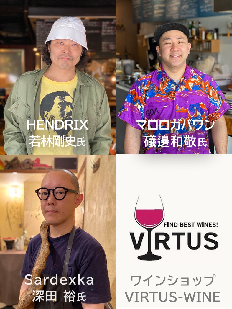 sardexka(入谷)の深田 裕氏、 HENDRIX(外苑前)の若林剛史氏、マロロガバワン(新井薬師)の礒邊和敬氏によるオリジナルビュッフェを60名限定で提供。お酒は、日本ワインやナチュラルワイン、ブルゴーニュを中心に扱うワインショップ VIRTUS-WINE(神宮前)がセレクトします。“夏だビールだスペインド祭りワインもあるよ“をテーマとし、「バスク料理」をベースに日本の食材で独創的な料理を作り出す深田氏と、冒険と遊びが入り混じったスパイス使いが特徴の若林氏、センスあるスパイス使いで人気の礒邊氏の3名によるオリジナルコラボメニューはお酒が進むこと間違いなし。