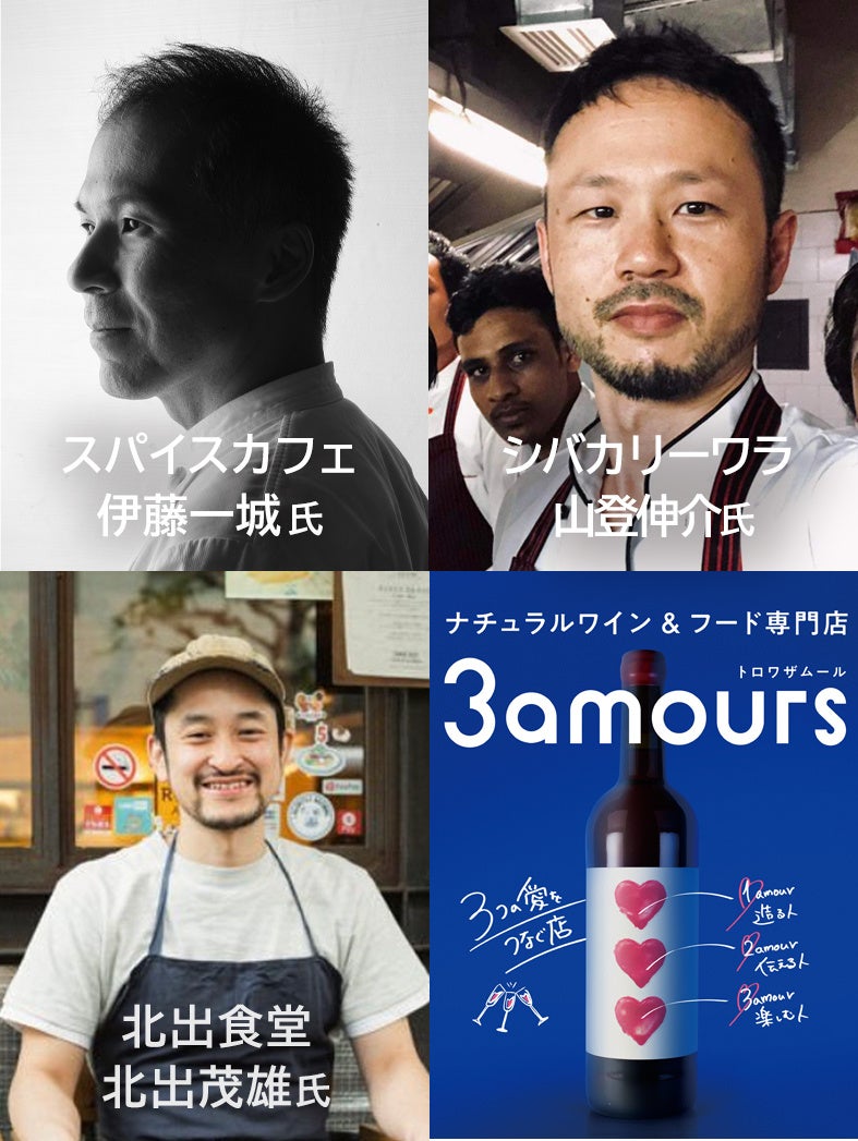 北出食堂 https://www.kitadeshokudo.com/pages/shokudo SPICE CAFE https://spicecafe.jp/ シバカリーワラ https://www.instagram.com/shivacurrywara/ BMO株式会社 https://www.naturalwine.jp/company/ アンテナショップ「トロワザムール」https://3amours.com/ |