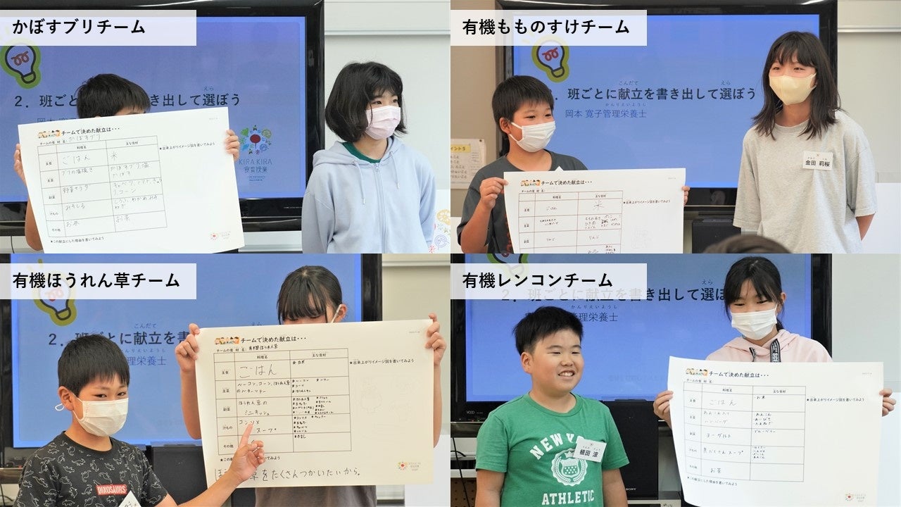 児童は頭を悩ませながら、「主菜、主食、副菜などバランスの良いメニューはどうしよう」「食材が収穫できる季節も気にしないといけない」など意見も飛び交い、真剣に取り組む様子が見られました。