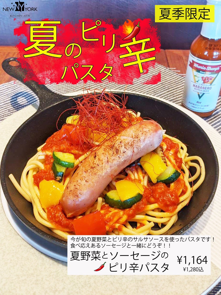夏野菜とソーセージのピリ辛パスタ 1280円