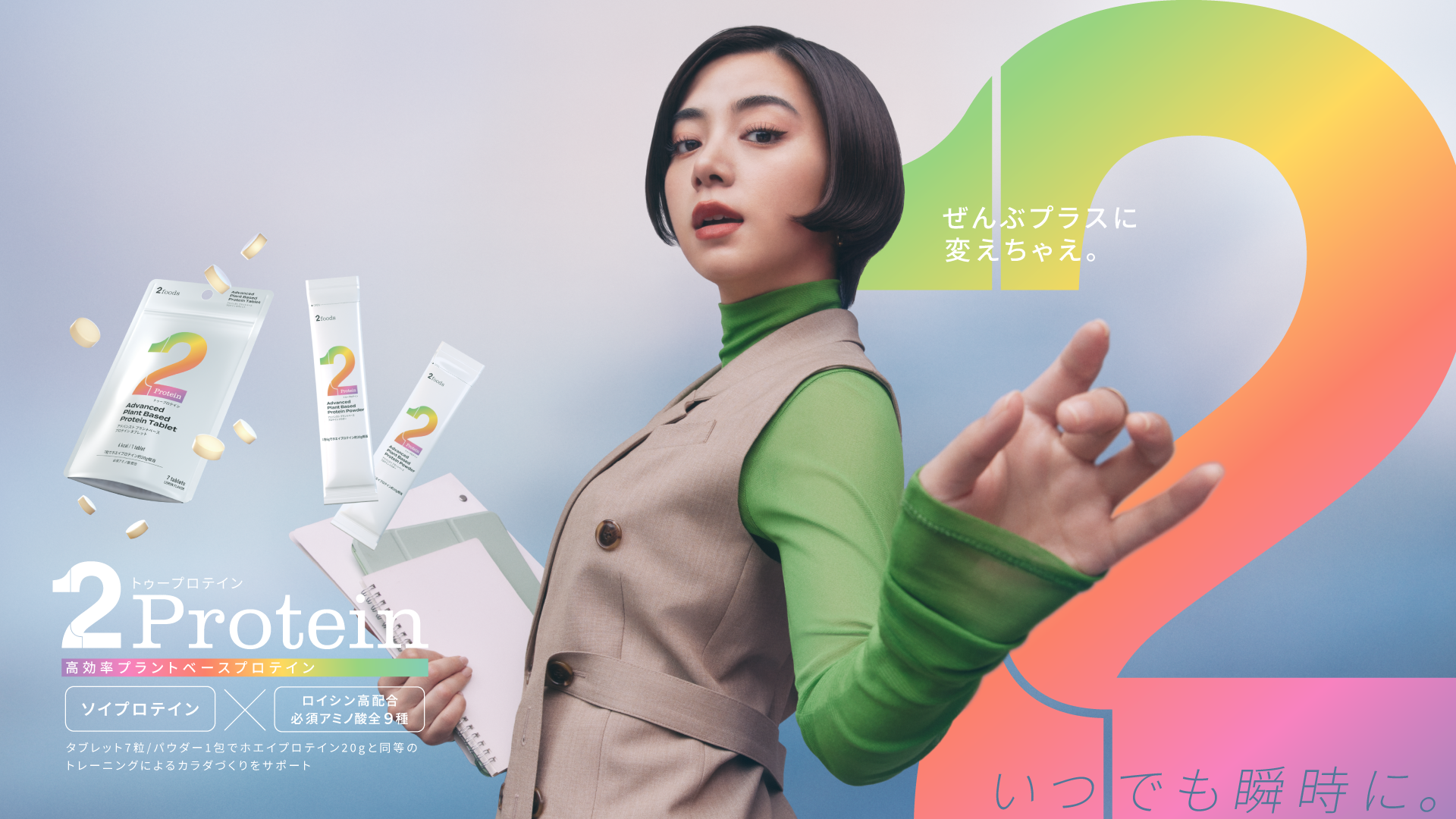 「2Protein」のプロモーションコンセプトには、「ぜんぶプラスに変えちゃえ。 #AnytimeProtein」を掲げ、限られた人のものとしてとらえられがちなプロテインや筋トレのイメージを変え、誰もが日常の中で気軽に取り組めるようなスタイルを提案することで、多くの人々の運動習慣に貢献していきたいと考えています。
