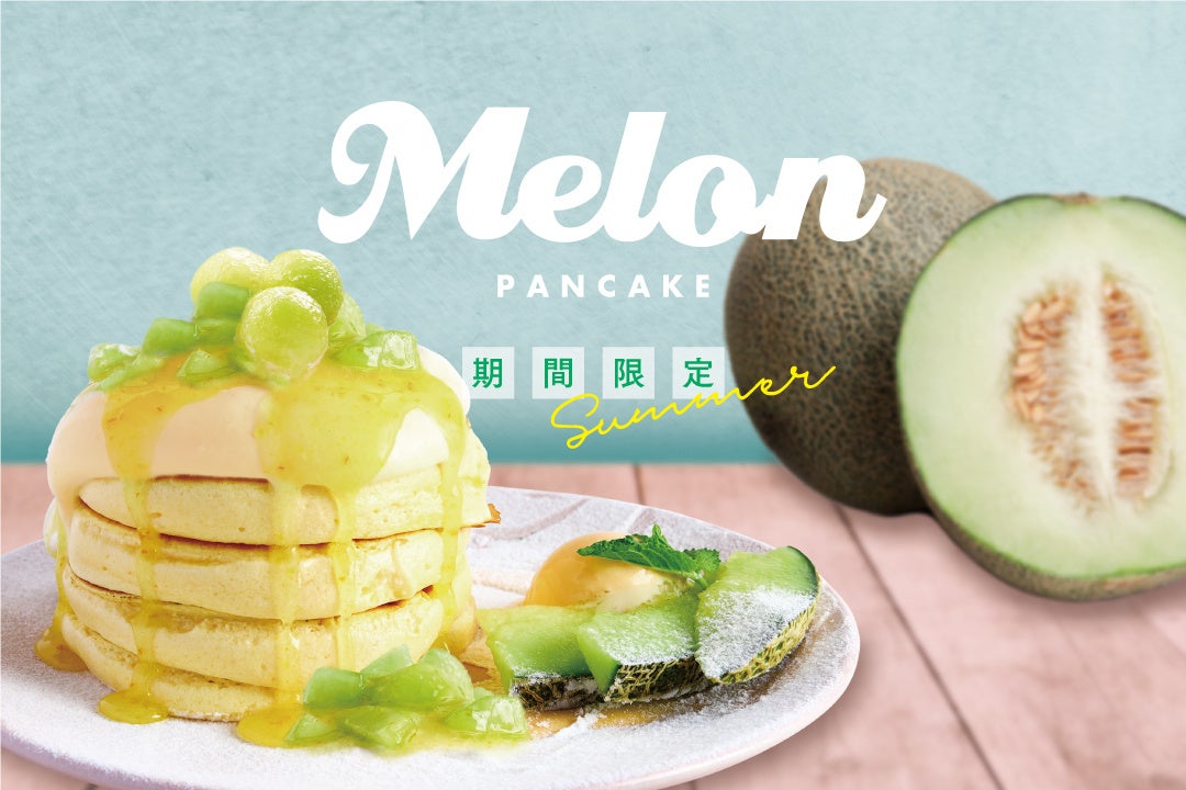 生クリームと夕張メロンアイスを合わせた口当たりのいい特製クリームとジューシーな完熟メロン果肉がたっぷりトッピングされた贅沢なパンケーキです。