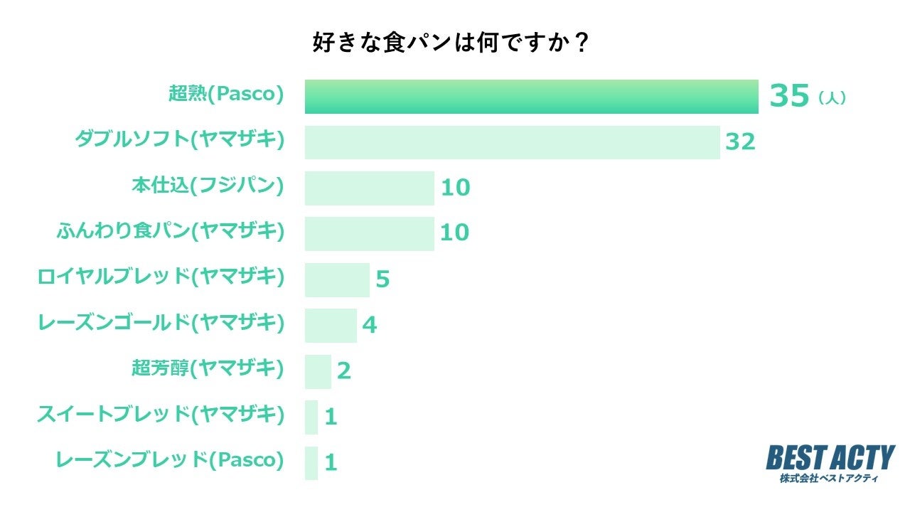 アンケートの結果、「超熟」と答える人が最も多い結果となりました。