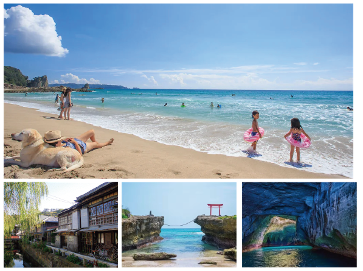 また、浜辺以外にもペリーロードや白浜神社、龍宮窟など歴史文化や地形を生かした観光資源が豊富なロケーションです。