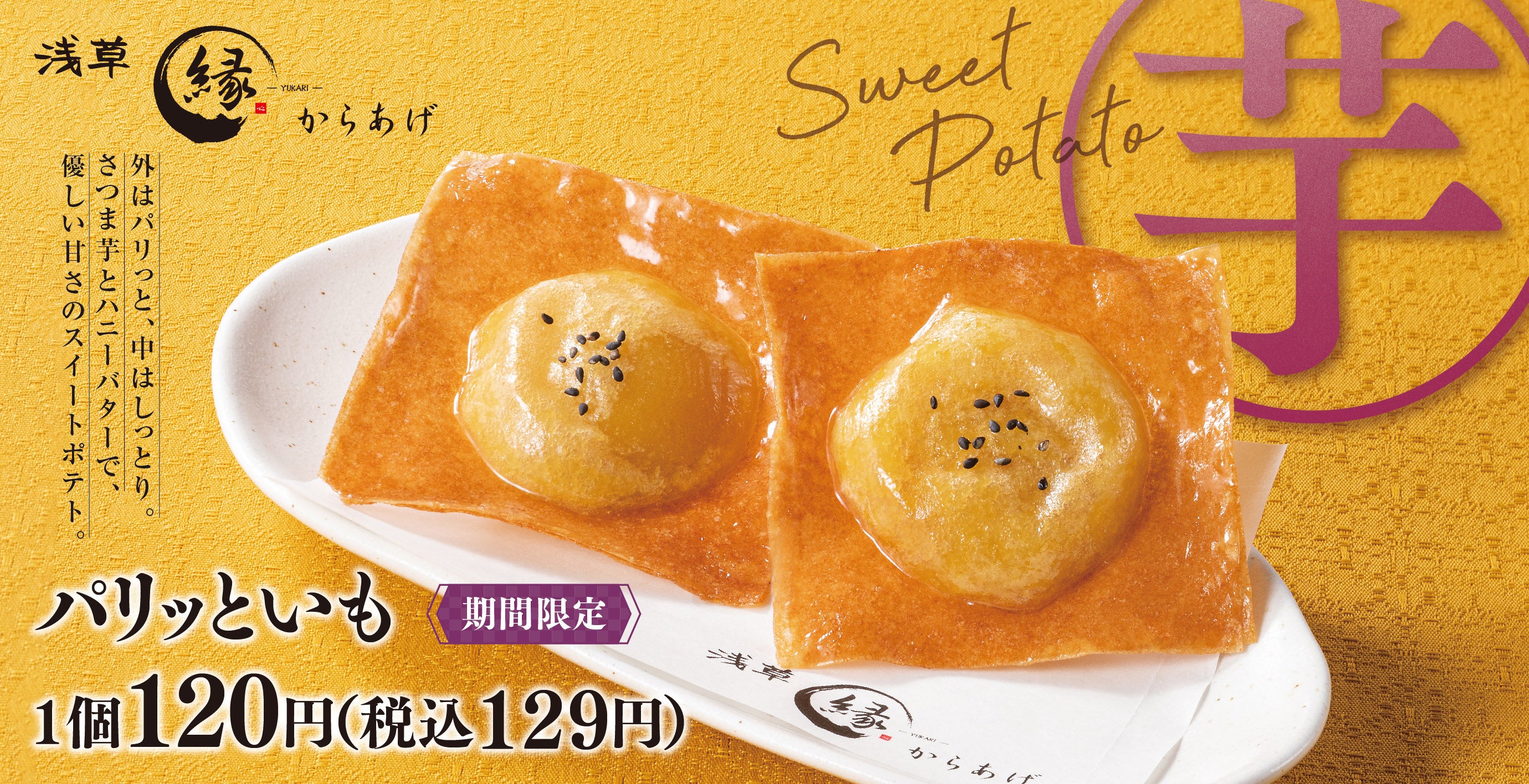 からあげ専門店「からあげ縁-YUKARI-」では、夏休みの食べ歩きなど思わず手にとりたくなるスイーツ「パリッといも」を2023年7月21日(金)より販売開始いたします。