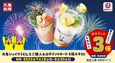本キャンペーンの参加にはエントリー※1が必要で、「丸亀製麺」の店頭でお持ち帰り専用の対象商品「丸亀シェイクうどん」※2をご注文の際にdポイントカードなど※3(以下、dポイントカード)をご提示いただくか、モバイルオーダーにてdポイントカードをご登録の上、オンライン決済をしていただくと、対象商品のお支払い金額に対して通常の3倍のdポイント※4※5※6を進呈いたします※7。