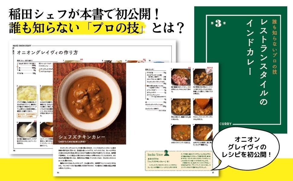 スパイスを使った本格インドカレーを家庭で作るのは難しそうですが、玉ねぎを使ったカレーベース「オニオングレイヴィ」を活用することで、レストランで提供されるようなエレガントな旨味たっぷりのインドカレーを手軽に作ることができます。本書では、稲田シェフが特別にこの秘密のカレーベース「オニオングレイヴィ」の作り方を初公開。ぜひ一度、ご家庭でプロの味を再現してみて下さい!