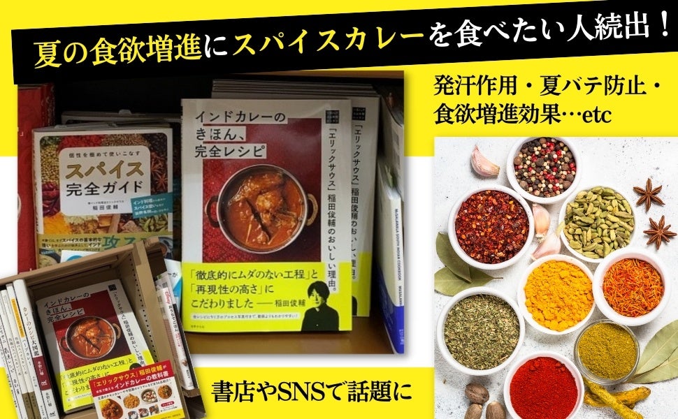 さらに猛暑日が続く中、スパイスの食欲増進効果が注目され、書店ではスパイス料理本のコーナーが話題に。発汗作用や消化促進・食欲増進効果のあるスパイスカレーを家でも食べたいという関心を集め、反響を呼んでいます。