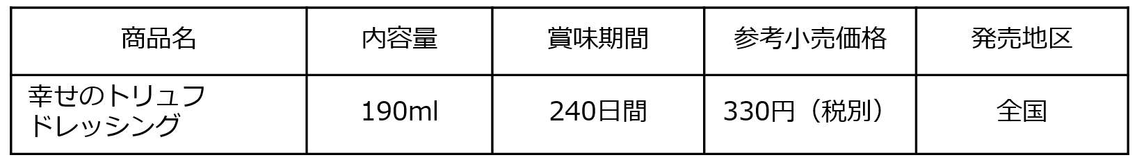 昨今の値上げが続く状況のなかでも「節約はしつつ、ちょっとした贅沢も楽しみたい」という方が多く見られます。本商品はそんなニーズに応えた1本です。ドレッシングの選択にも「簡単にワンランクアップできる」 「わくわくできる」楽しみを提供し、いつもの食卓も少し“リッチ”な気分で楽しめます。