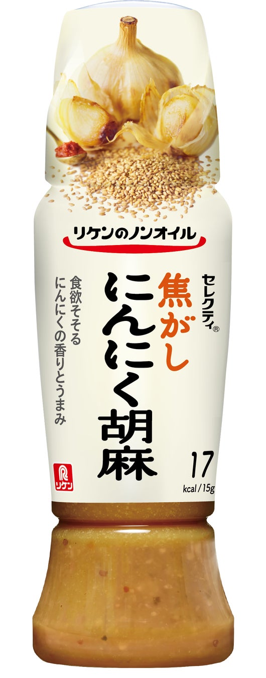リケンのノンオイル セレクティ®シリーズは、独自製法で素材のうまみを引き出したノンオイルドレッシングで。お客さまからも「ノンオイルなのにコクのある味」を評価いただいています。そんなシリーズから「焦がしにんにく胡麻」が新登場です。