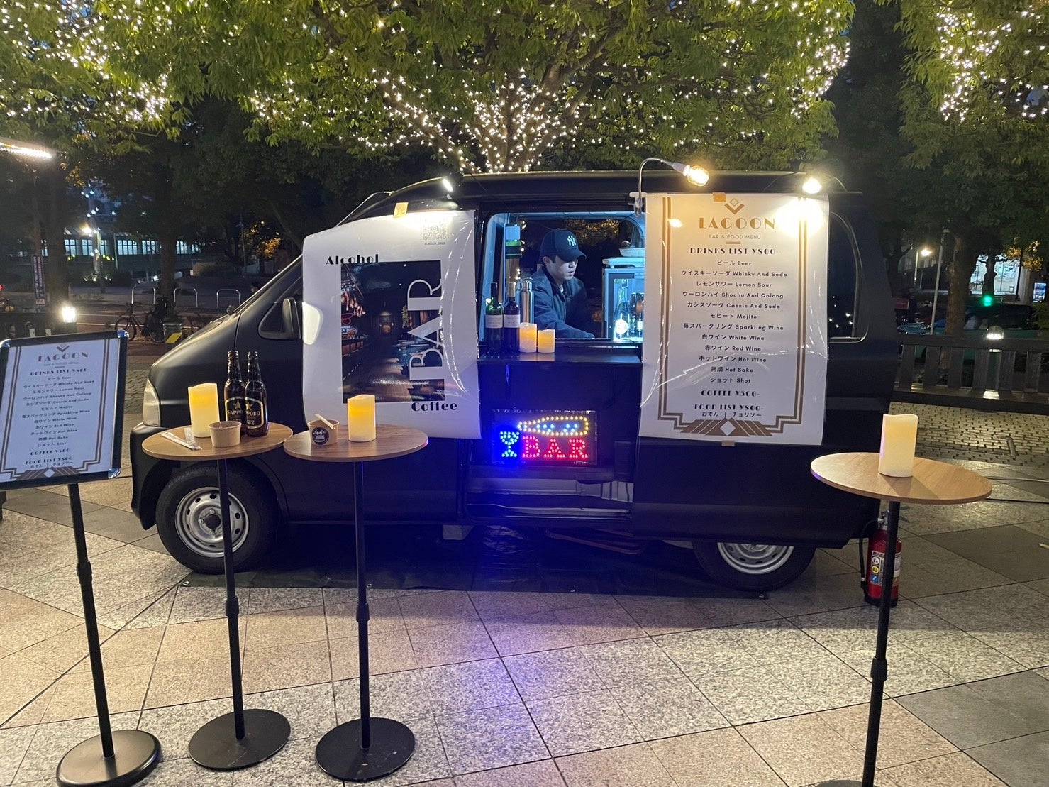 「lagoon」について:昨年コリドー街土橋交差点にOPENした、キッチンカーBAR。屋台バーとして、FOODも提供。日本各地でのイベントも開催しており、幅広く活動中。
