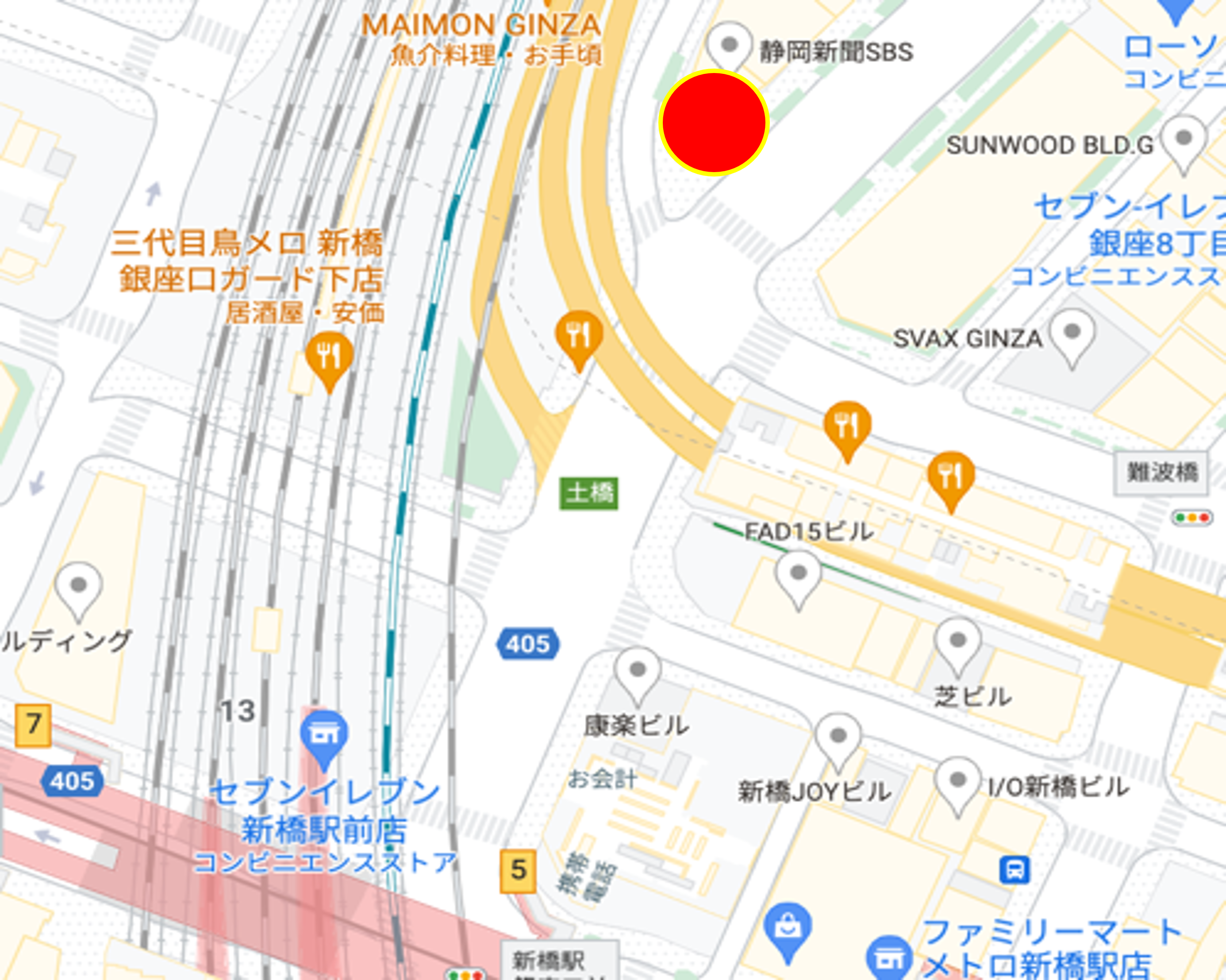 銀座8丁目土橋交差点 コリドー街新橋方面入口 静岡新聞社東京支社前(イベントスペース)