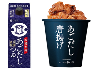 「あごだしシリーズ」でお馴染みの明治26年創業 株式会社久原醤油様よりご提供頂くくばら「あごだしつゆ」を使用した「あごだし唐揚げ」を店内で調理し、ご提供。KAORUとのペアリングを楽しめます。