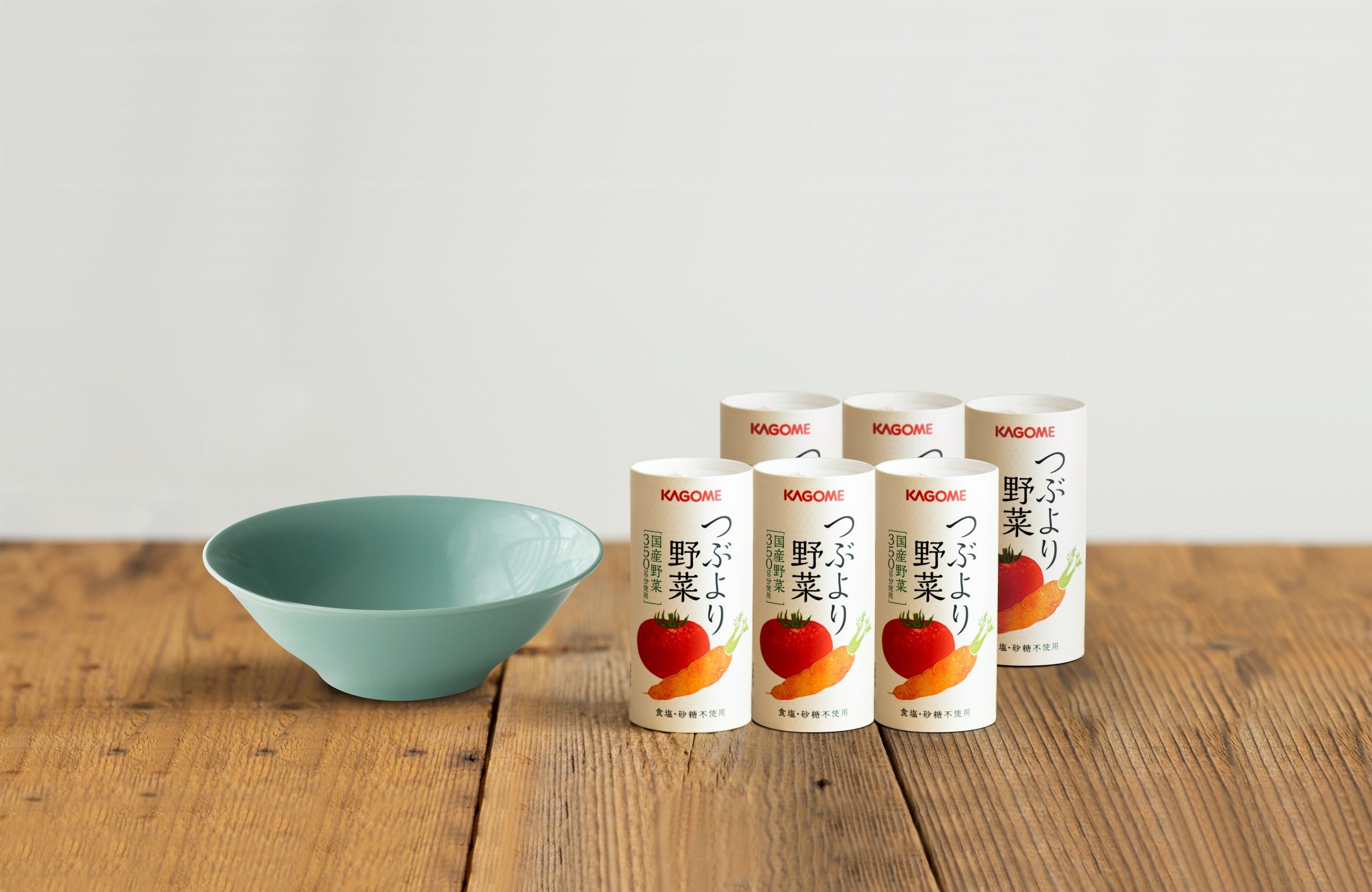※2 蒲公英[たんぽぽ]色の小鉢/白群[びゃくぐん]色の小鉢 と 「つぶより野菜」の詰め合わせ各450セット