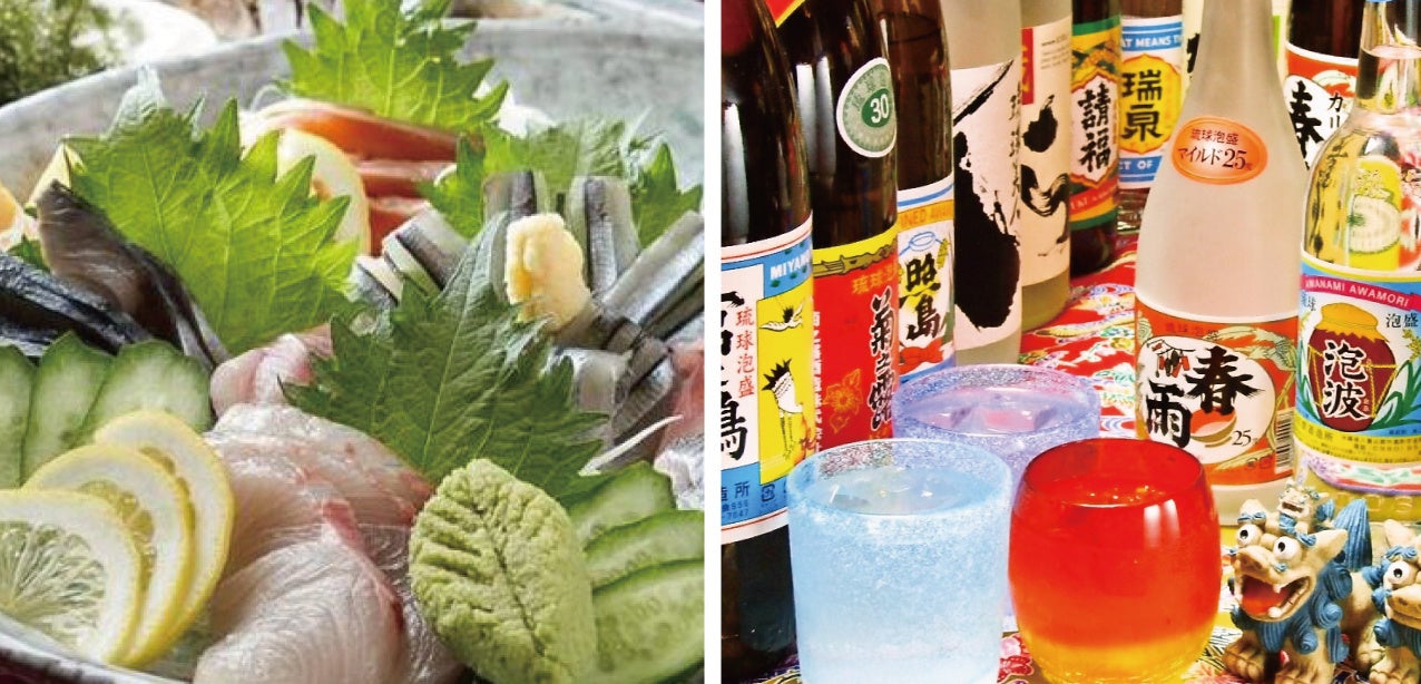 ドリンク…オリオンビール・ハイボール・サワー各種(レモンサワー、シークワーサーサワーなど)、ソフトドリンク各種