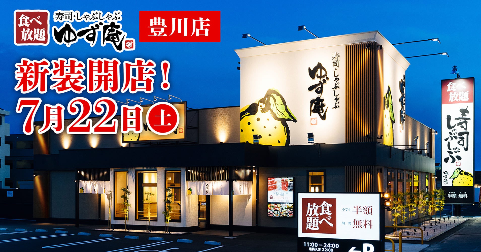 『寿司・しゃぶしゃぶ ゆず庵 豊川店』が2023年7月22日(土)新装開店