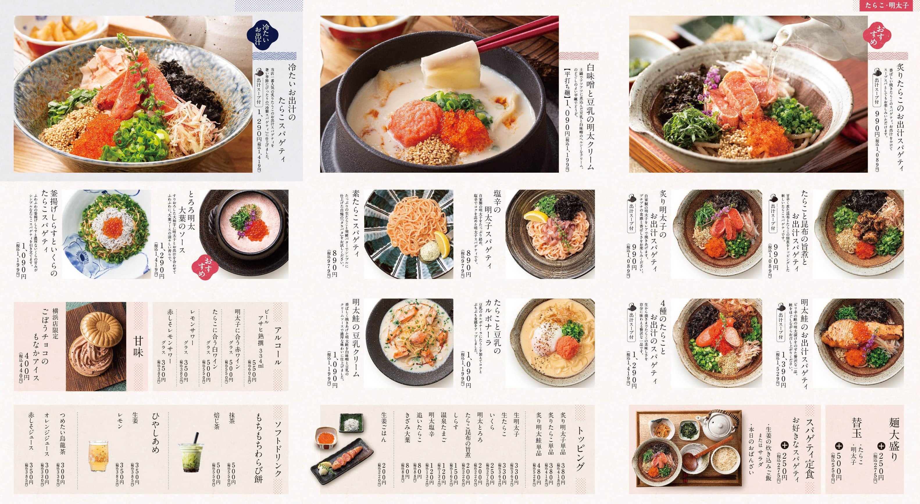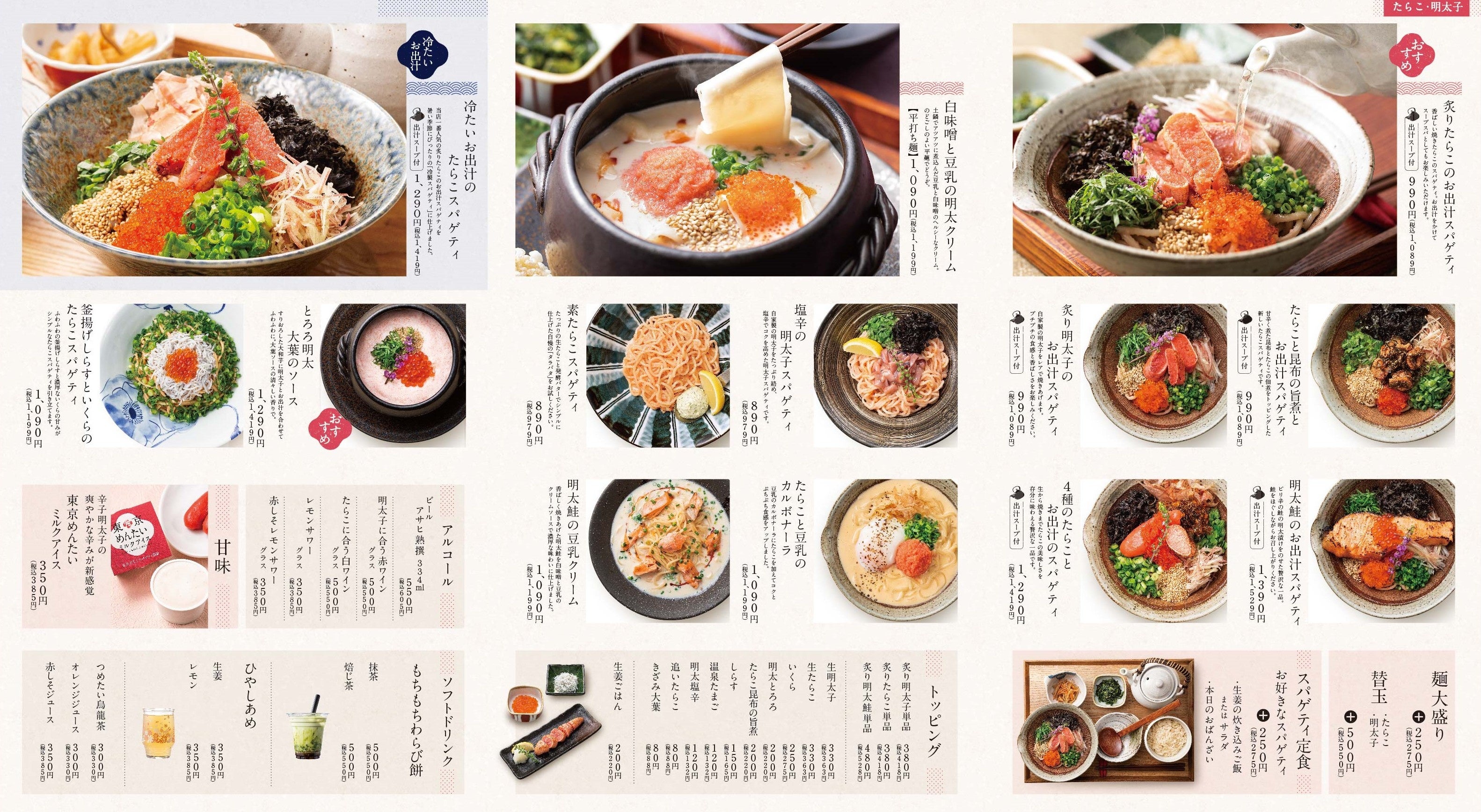 「東京たらこスパゲティ」は、頑張る女性を応援したいという想いで誕生しました。女性ひとりでも利用しやすい明るく清潔感のある空間で、親しみのある身近な「たらこスパゲティ」を今までにない提供スタイルと専門店ならではのこだわりによって磨かれた進化系たらこスパゲティを提供いたします。