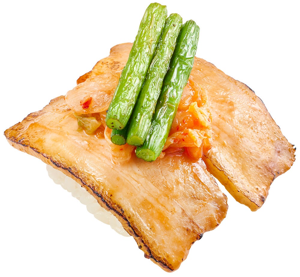 そんなスシローで開催する今回の『スタミナ祭』では、お客様におすしを食べて暑い夏を乗り切っていただけるよう、スタミナがつく商品を多数ご用意いたしました。うなぎ商品の目玉は、蒸し・焼きを重ねて旨みを凝縮させたうなぎを大きく切りつけた「大切りうなぎ」です。ふっくらジューシーな身を、ボリューム満点の大切りでご堪能いただけます。また、一尾から一つしか取れない貴重なうな肝を香ばしく焼き上げた「うな肝軍艦」や、こだわりの「うなぎ」を2貫で一番お手頃な黄皿でご提供いたします。うま辛商品では、かつおのたたきにキムチとごま油の風味を加えた「かつおのたたキムチ」と、辛味噌たれとあっさりとしたびん長まぐろの相性が抜群な「辛味噌びん長」が特におすすめです。その他にも、えびチーズやサーモンちーず、チキンロール等に甘辛いヤンニョムソースを合わせた“ヤンニョム”商品や、甘辛いタレで味付けした豚バラにキムチやにんにくの芽といったスタミナ食材を盛り付けた「スタミナ豚キム」等の“肉系”うま辛商品もお楽しみいただけます。また、揚げたてのフライドチキンにヤンニョムソースを絡めた「ヤンニョムチキン」や、辛くてシビれる旨さで人気の“鬼金棒”監修の「カラシビ味噌らー麺」など、サイドメニューに至るまでスタミナ商品を豊富にラインアップいたしました。