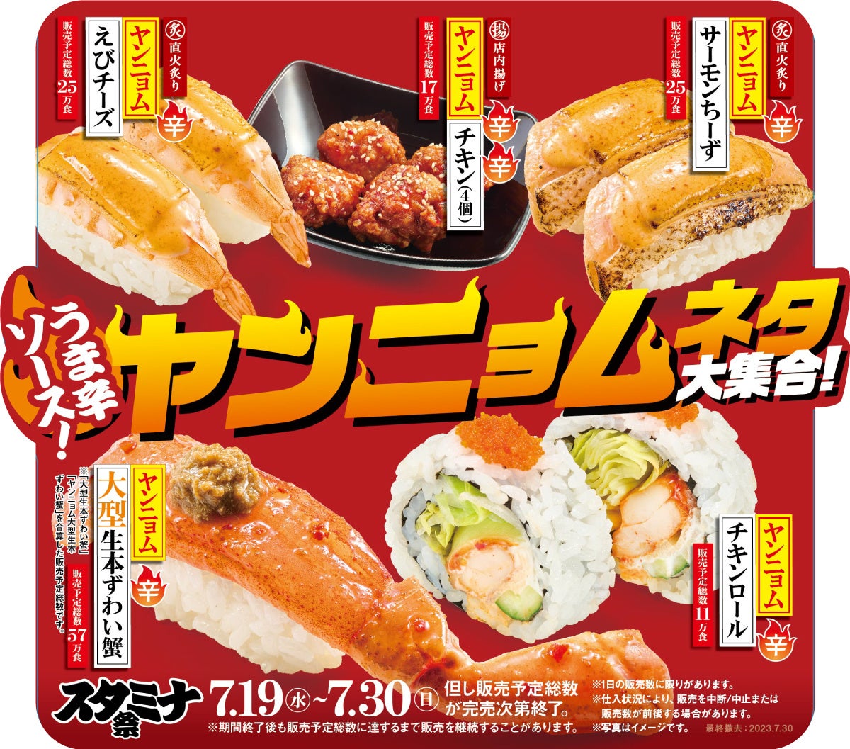ぜひこの機会にスシローで、暑さを吹き飛ばすスタミナ商品をご堪能ください。
