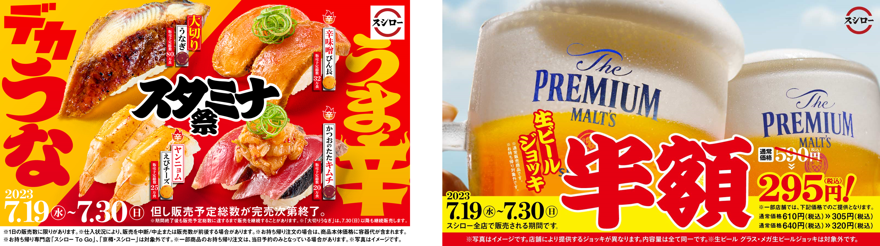 今スシローができる精一杯として、夏の暑いこの季節にうまいビールをお楽しみいただきたい、という想いから「生ビール ジョッキ」を半額でご提供いたします。