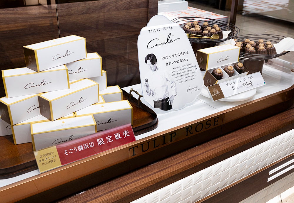 6号店となるそごう横浜店のオープンを記念して 店舗限定で新発売した『チューリップローズ カヌレ』は、発売初日の17時販売分は45分で予定数78箱が完売。その後も店頭にならぶたび早期完売となり、人気を博しています。