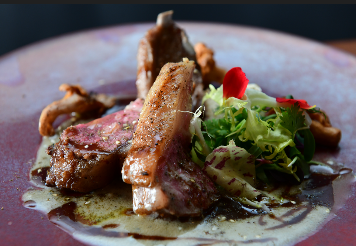 メニューにはありませんが、お客様のリクエストに応えて、仔羊背肉をローストし、お好みのソースを合わせました。