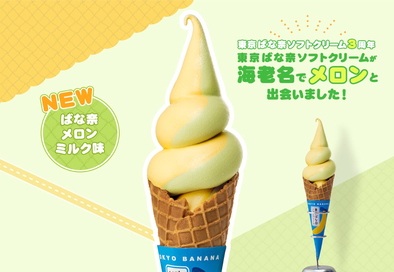 - 東京ばな奈ソフトクリームが“海老名”で“メロン”と出会いました。新作『ばな奈メロンミルク味』。