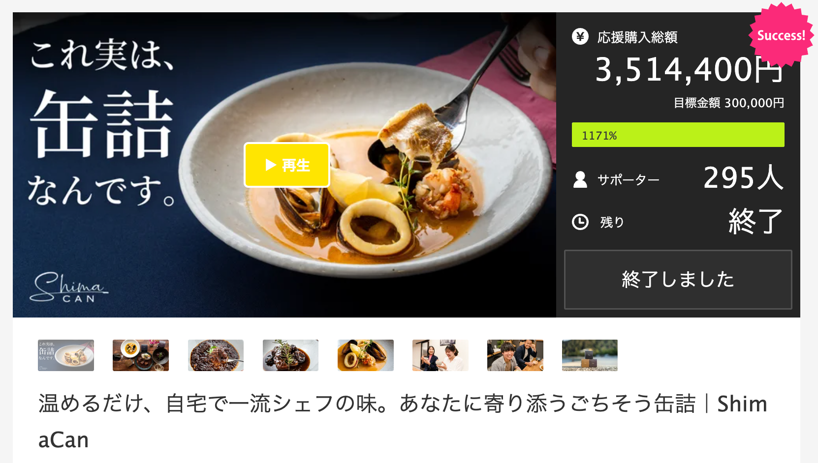 これは、Makuake内の缶詰食品の中では歴代1位の金額です。